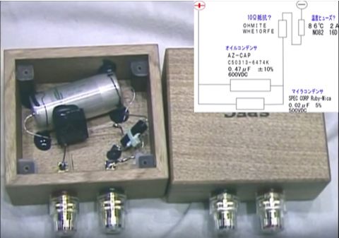 しかし Audio-Labo Inc.の サウンド・アクセラレーターは、幸い?なことに樹脂でモールドされており、中を覗き見ることができない作りになっている。「日米特許取得済み」とのことで、原理はちゃんとしているらしい。ただし、素材や仕組みが開示されておらずブラックボックスであることに変わりはなく、当方の基準では「オカルト・アクセサリー」にあたります。