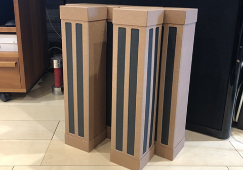 ルームチューンを謳ったアクセサリーは、設置や使いこなしが難しいものが多いですが、この 韻(HIBIKI)は、オーディオシステムの周りやリスニングルームの壁際やコーナーなどに置くだけで効果を得られます。外装は硬質の紙で軽いので、壁面にプッシュピン程度のもので取り付けられる穴も空いています。地震で落下して頭に当たったとしても、たぶん大丈夫です(自己責任で)。