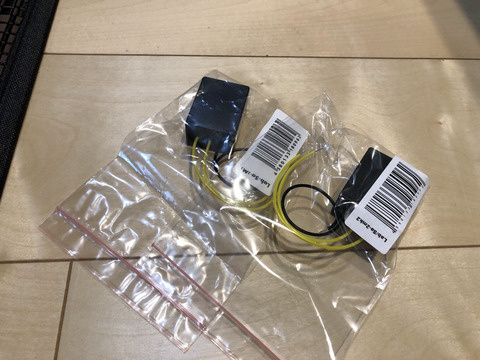 厚みを増やしたマッチ箱くらいの小さな樹脂製の黒い本体から三本のリード線が出ている。このうちの黄色の2本をスピーカーユニットの+ー端子に、黒い1本をユニットフレームなどに取り付けます。私は オーディオオート製38センチウーハー 2001-38Wの巨大なマグネット外周に銅箔を貼り付け、黒色リード線をハンダ付け、本体はマジックテープでフレームに貼り付けました。